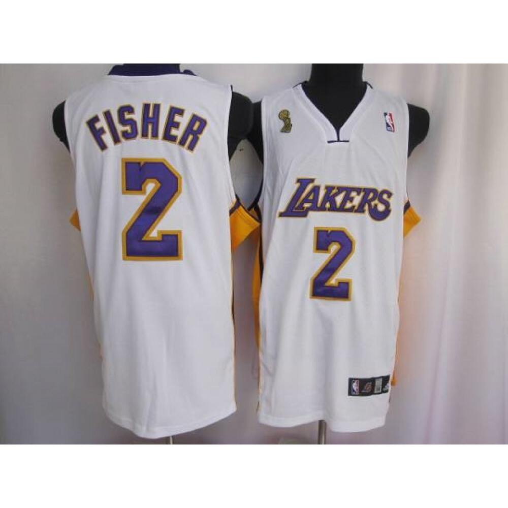 Lakers #2 Derek Fisher Stitched White Champion Patch NBA Jersey